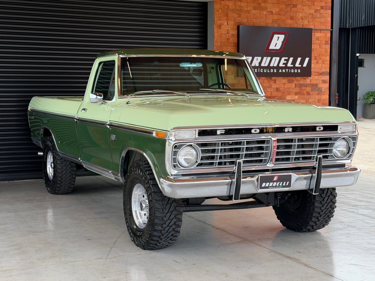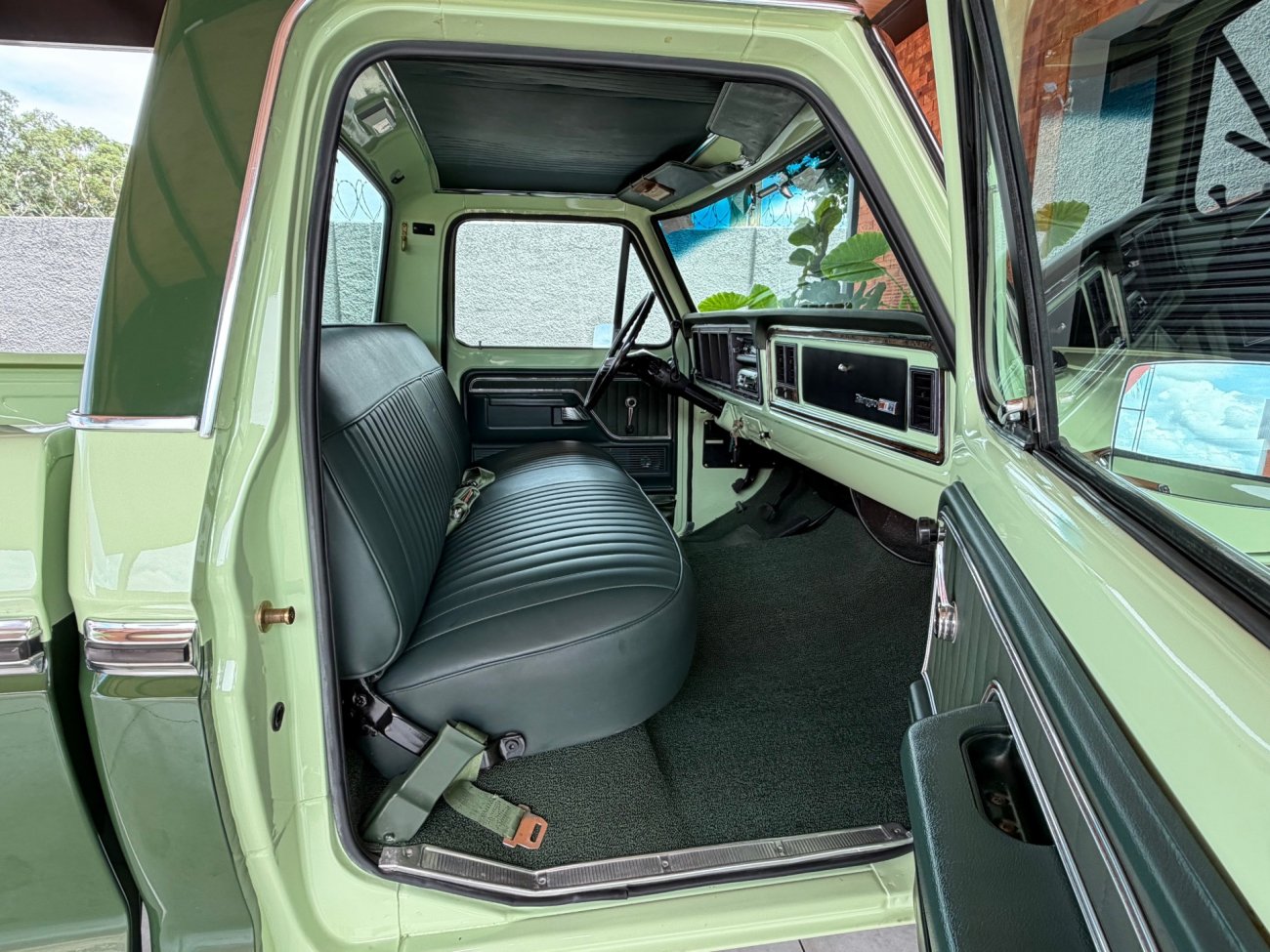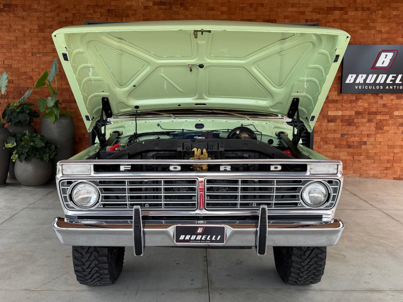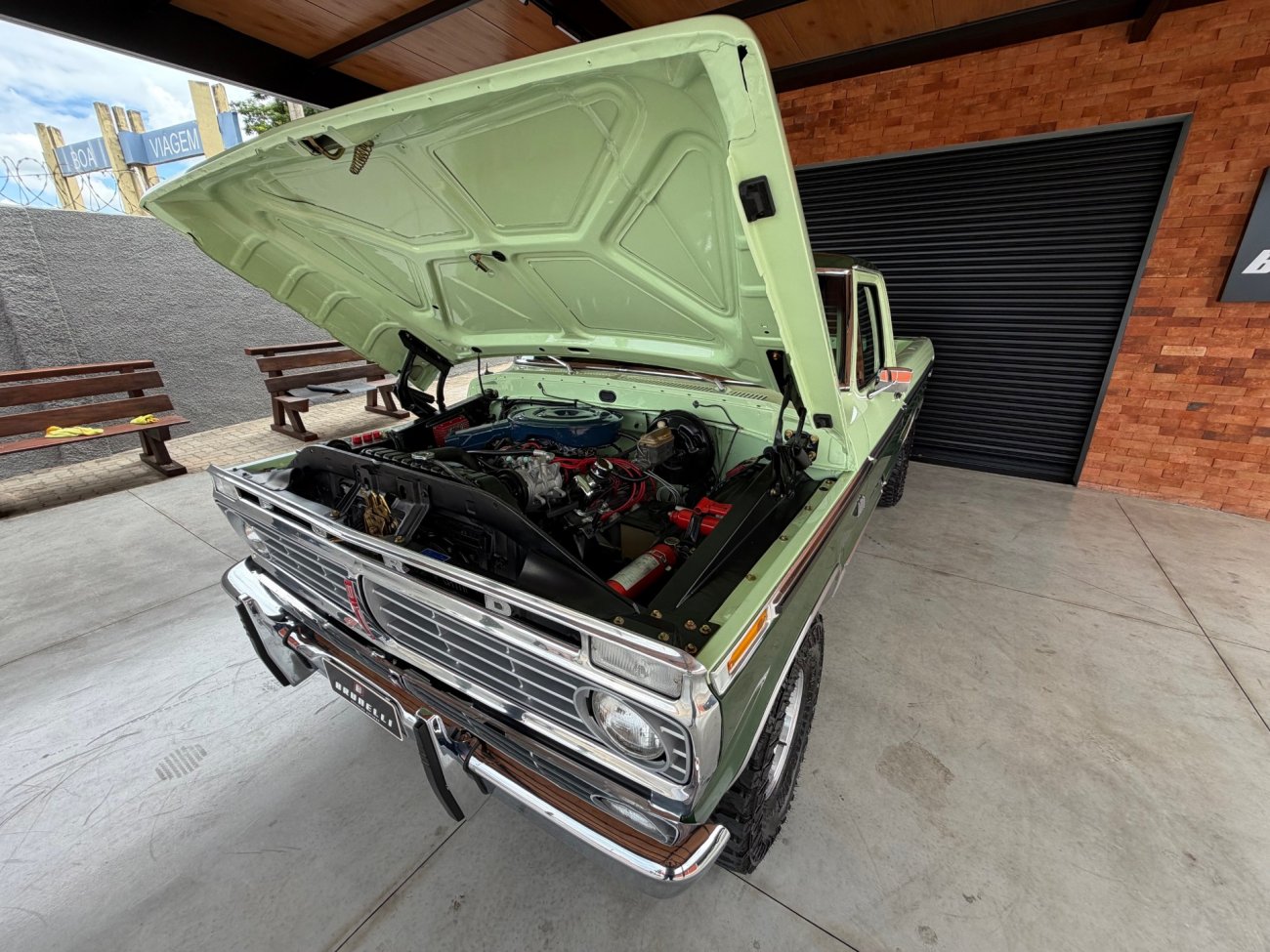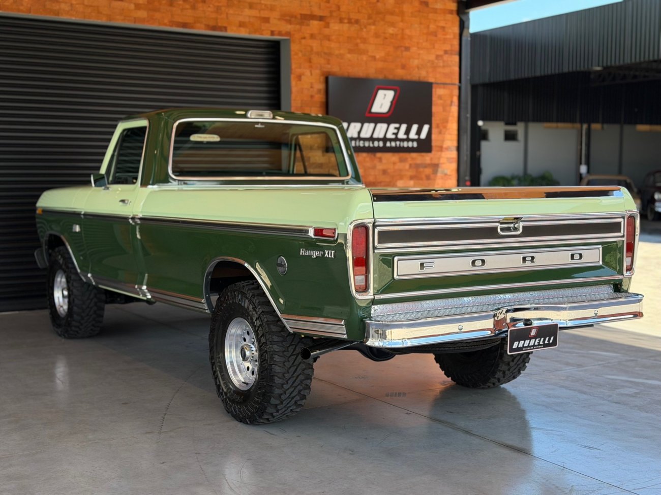Raro modelo de F-100 Ranger XLT americana com motor V8 390 6.4L e câmbio automático originais, caminhonete criteriosamente restaurada em altíssimo nível, possui ar condicionado e direção hidráulica, interior verde monocromático original em perfeito estado, pintura absolutamente impecável sem detalhes, frisos originais perfeitos, grade impecável, vidros Carlite originais, mecânica toda revisada com cabeçotes novos de alumínio Edelbrock Performer, comandos e tuchos Compcams 268H, admissão de alumínio com carburador Edelbrock 850, faróis e lanternas originais Ford, impecável estado.