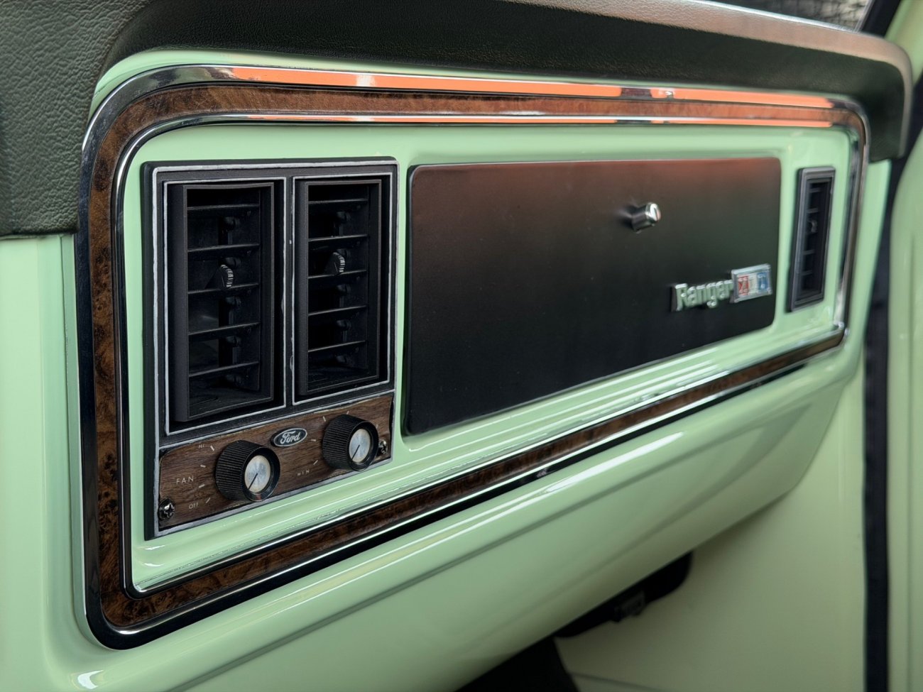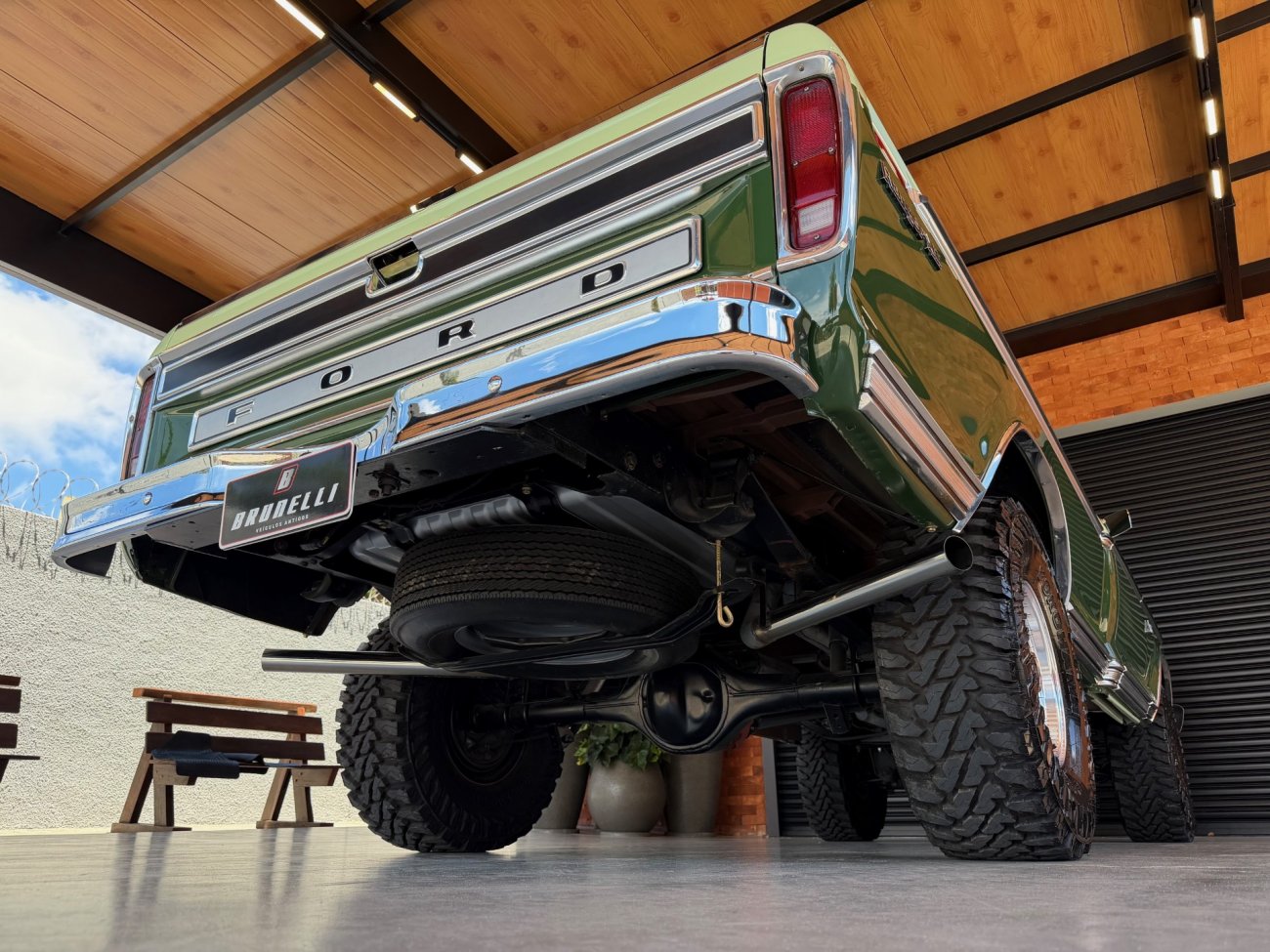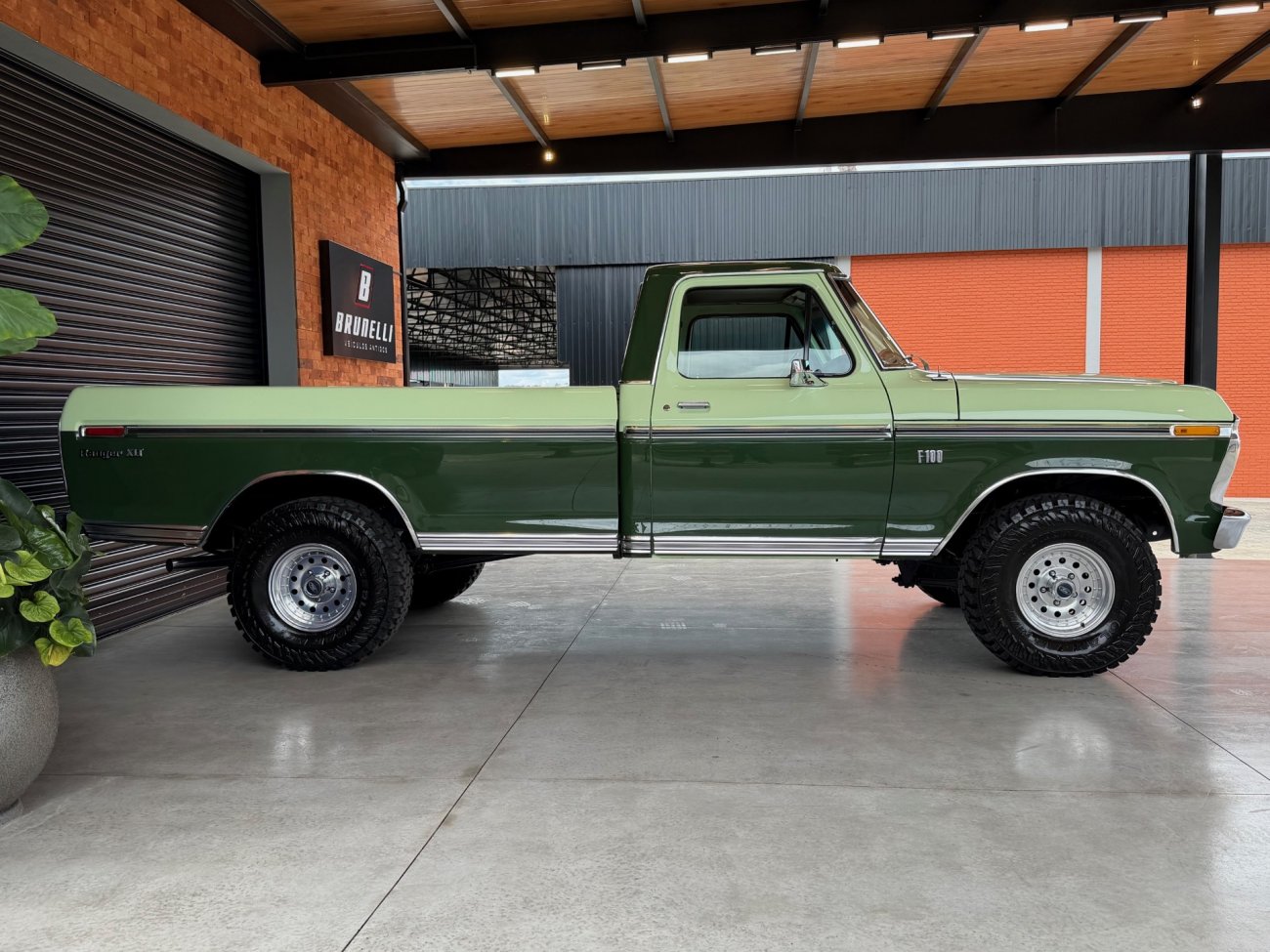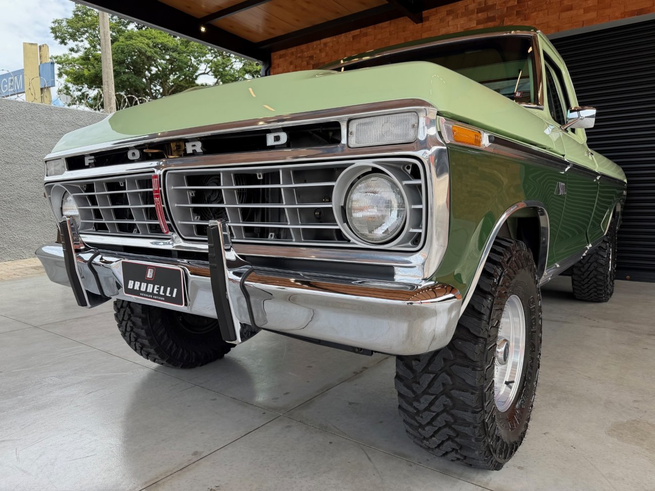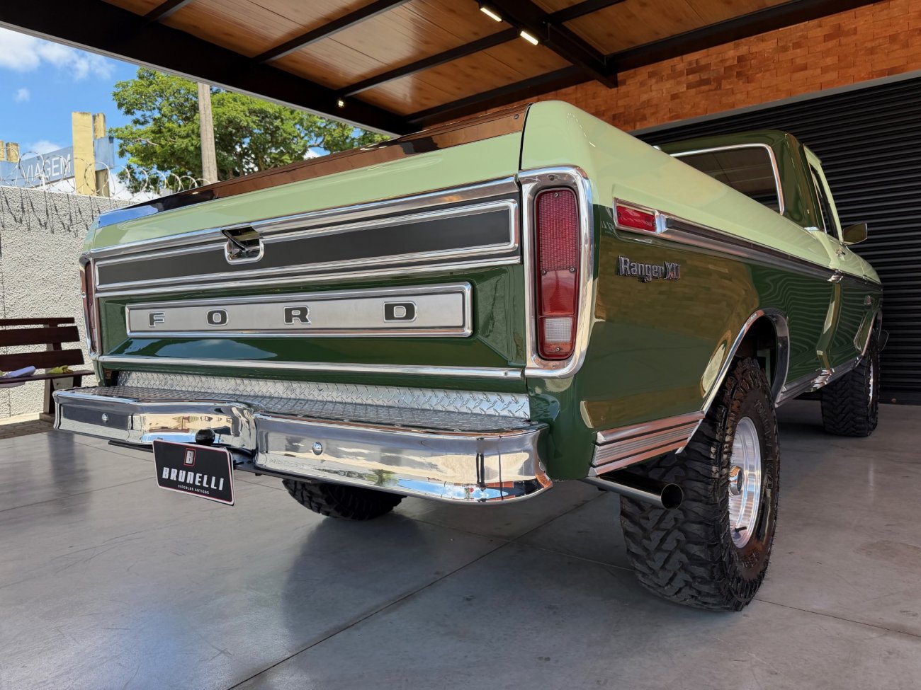 Raro modelo de F-100 Ranger XLT americana com motor V8 390 6.4L e câmbio automático originais, caminhonete criteriosamente restaurada em altíssimo nível, possui ar condicionado e direção hidráulica, interior verde monocromático original em perfeito estado, pintura absolutamente impecável sem detalhes, frisos originais perfeitos, grade impecável, vidros Carlite originais, mecânica toda revisada com cabeçotes novos de alumínio Edelbrock Performer, comandos e tuchos Compcams 268H, admissão de alumínio com carburador Edelbrock 850, faróis e lanternas originais Ford, impecável estado.